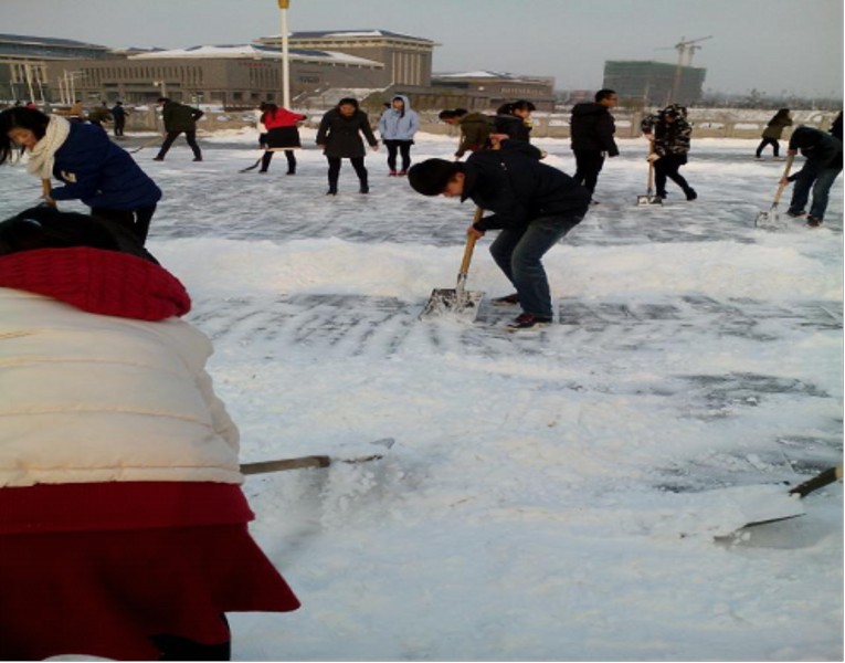 天空还飘洒着小雪,冷风呼呼的吹着,这些不利的条件却丝毫影响不了同学们的热情,同学们自愿结成小组,领好自己的扫雪工具,班委们也很快分配好了每个小组的任务,场面热闹,工作之余,嬉笑声也不断。扫雪休息的过程中,不时有几个同学打雪仗,也有的同学按耐不住堆起了小雪人,还有爱生活的女生们拍起了雪景,乐趣无限。男生们主动帮助女生清除大面的冰块,在大家的共同努力下,扫雪任务得以很快的完成。