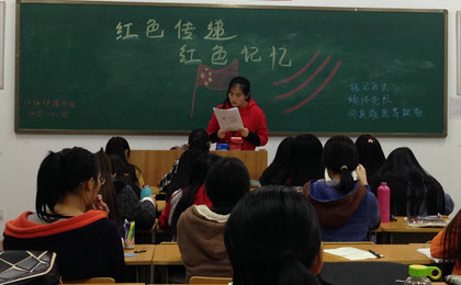 为传承中国人民的伟大抗战精神,弘扬革命老先辈的红色品质,培育当代大学生的爱国主义情感,2015年10月25日晚七点半,14级护理4班全体同学在护理大楼309教室召开了“红色传递”主题团日活动。此次主题团日活动由王娜萌主持,辅导员秦亚莉特邀出席。