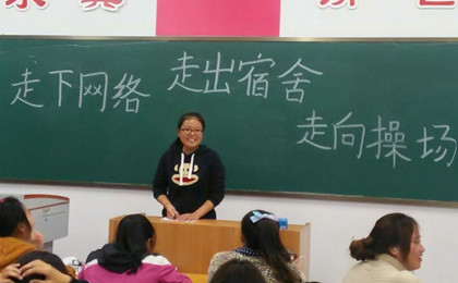 随着科技时代的到来以及互联网的高速发展,同学们耗费在网络上的时间逐渐增多,渐渐离不开网络。为了减轻同学们对网络的依赖,2014年10月25日晚上8时,我班全体同学于班里举行以“走下网络 走出宿舍 走向操场”为主题的团日活动。