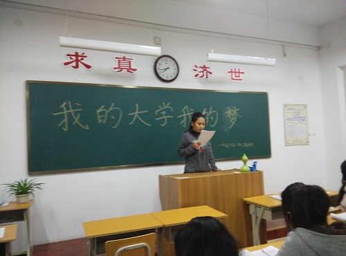 班会一开始,主持人团支书吴滢滢同学做了开场白,活跃了班会气氛,介绍了班会的目的和内容。随后,班长起带头作用,郑重朗读自己事先准备好的发言稿,全班共10位学生代表做了精彩的演讲,关于“我的大学我的梦”讲出了自己的见解和看法,在全班同学面前展现了各自大学五年的发展蓝图,畅谈了自己的理想与目标,以及在今后五年中的计划,期间,为活跃气氛,体育委员庞尧斌以幽默风趣的方式讲述了自己的经历,并且也向同学们提出了建议和意见,明确自己的方向。体育委员庞尧斌负责拍摄下这美好的瞬间,记载下这同学们之间的共同回忆。