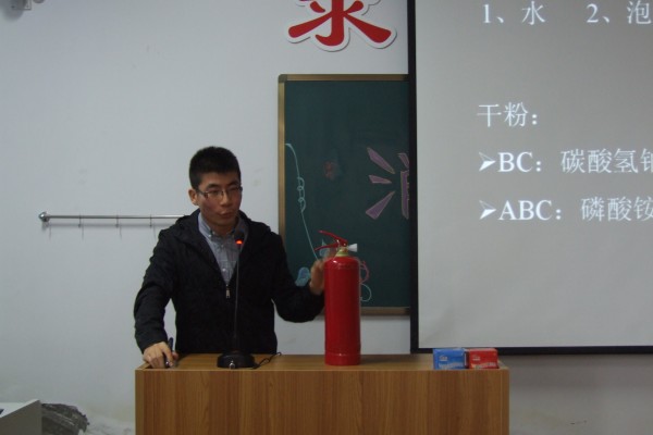 讲座伊始,周老师先从上海商学院宿舍失火,四位女生跳楼身亡和浙江温岭大东鞋业失火等身边发生的火灾事件为切入点,向同学们讲述了火灾的普遍性、随机性和必然性。同时,也为同学们敲响警钟,引起同学们的高度重视。在血的教训面前,同学们都陷入深思和沉默。紧接着,周老师给同学们详细介绍了火灾的五种分类,包括固体火灾、液体火灾、气体火灾、金属火灾、电器火灾五大类,针对不同类型的火灾为同学们讲解了相关预防、逃生的小知识、小技巧。随后老师重点介绍了居家必备安全消防工具的使用方法、如何寻找防烟面罩与熟悉消防通道等常用方法,并现场展示了灭火器的正确使用方法,受到了大家的一致好评。