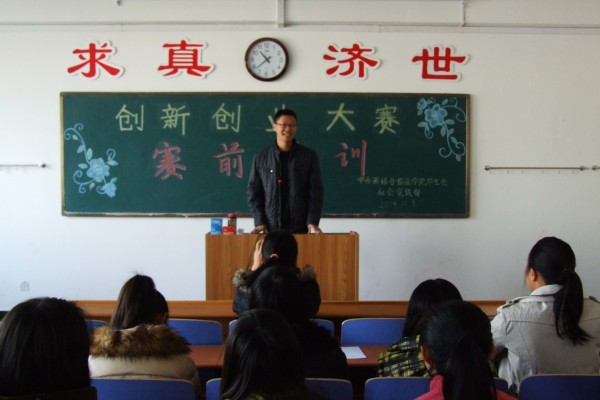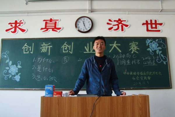 中西医结合临床学院为积极响应国家“十二五”号召,让同学们更加充分的了解大学生创新创业活动,于11月9日在医学楼306教室开展了创新创业大赛赛前培训活动。活动由中西医结合临床学院社会实践部部长徐广东主持,闫明、彭晨建两位获奖代表受邀担任主讲,创新创业爱好者积极参与。