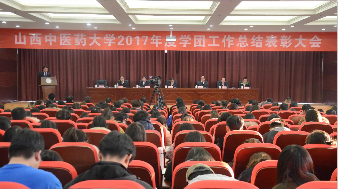 首先,由学工部部长梁晓崴总结了学校2017年度学团工作。紧接着,校团委书记白赟宣读《关于表彰山西中医药大学2016——2017年度共青团工作先进集体和先进个人的决定》、《关于表彰2017年大学生创新创业优秀项目和优秀指导教师的决定》,由梁晓崴宣读《关于表彰2016——2017年学生先进集体及个人的决定》、《关于表彰2016——2017年优秀辅导员的决定》。随后,出席本次会议的校领导为7个先进集体代表、7个先进个人代表、16名优秀学团工作者代表、12个大学生创新创业获奖团队代表等颁奖。