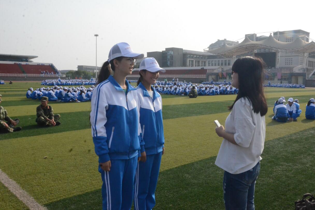 郭婵君:“两个字,‘充实’吧,因为刚上大学,有一种莫名的惊喜,在军训期间,和同学在一起那些欢快的笑声,渐渐淡忘了身上的累,所以我觉得很充实。”