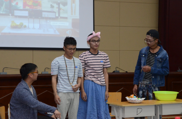 经过初赛、复赛的激烈角逐,五支队伍进入决赛。比赛开始前,健美操协会的同学为大家带来精彩的开场表演。第一组上场的是“达康宝宝”队,她们通过情侣的矛盾体现了青年期恋爱问题,并通过剧中解决矛盾的形式给了大家正确对待爱情的方式。接着“说壹不二”队表演的“钟点工阿姨”通过大学生的虚荣任性和母亲的付出包容,改变大学生心态的故事给了青年人心灵的启迪,感人的场景也让大家体会到了母爱的伟大。然后,“狂拽酷炫”队以祖母教育叛逆少女的故事,让大家更深的体会父母对孩子无限的爱。紧接着,“秒五”队原创作品“别那么骄傲”通过骄傲女孩和随和男孩灵魂互换的故事告诉大家,与人相处应有一颗真挚的心,并要善于表达自己的内心。最后“大叔不要跑”队通过“地铁故事”让大家在爆笑之后认真思考道德问题。选手们通过各自的精彩表演,反映大学生存在的问题,搞笑的表演却包涵深刻的内涵。