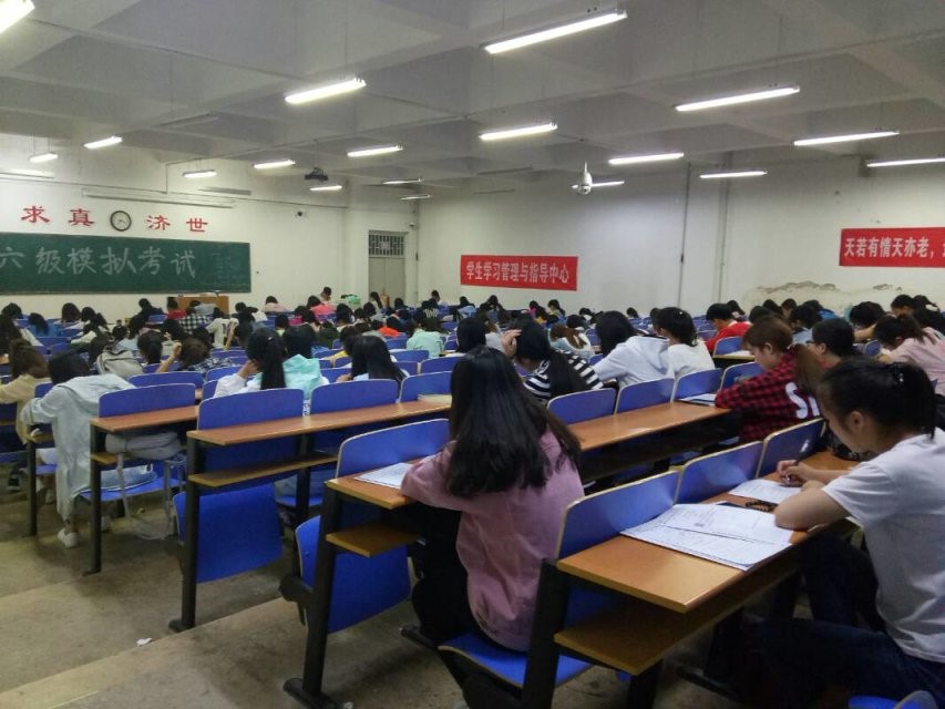 2017年5月22日和23日晚,山西中医学院学生学习管理与指导中心于在医学楼教室进行四六级模拟考试,参加考试的人员主要是全校有意愿参加模拟考试的学生,四级实到890人;六级实到221人。考试由学习中心的干事监考,主席团成员巡考。为了让同学们更好的适应四六级考试,取得良好的成绩。学习中心用了一个多月的时间,从学生报名到考试完满结束,每个环节都精心准备。