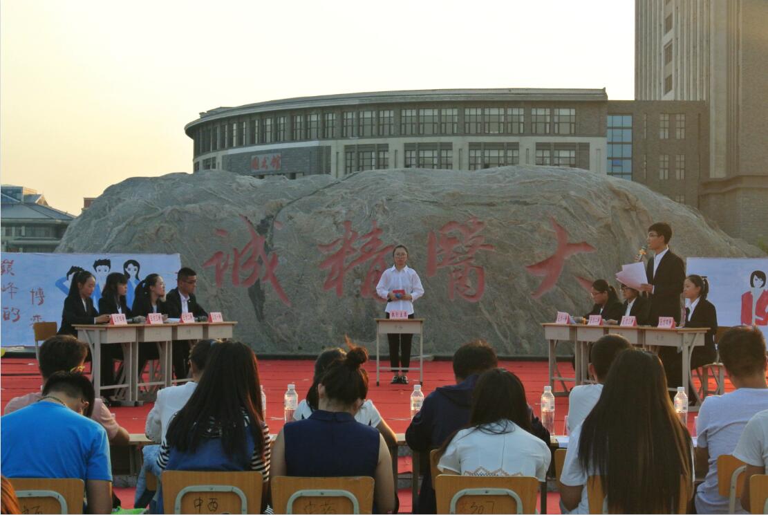 2017年5月26日晚7时许,中药学院举办的辩论赛决赛在我校大医广场举行,本次辩论赛以“研究人际关系《红楼梦》与《三国演义》哪部作品更有研究价值?”为主题展开。本次辩论赛邀请了中药学院学工办主任王小英老师、釜山学院学生会主席马倩、大学生自律委员会学风促进建设部部长耿新博、中药学院学生会主席赵耀伟、副主席李泽、中药学院表论赛指导员杨越旺以及中药学院各部部长作为评审团。同时也吸引了很多同学前来观看。