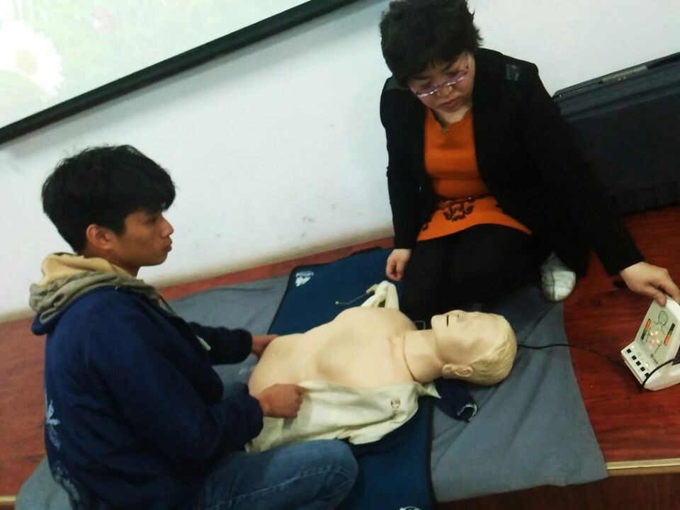 紧接着,高凌老师从心肺复苏的实践操作过程入手,播放了心肺复苏的完整视频,现场进行了亲自示范和操作,并与同学们进行了积极的互动,对于同学们操作过程出容易出现的一些错误进行了指导,经过高老师的悉心指导和讲解,同学们基本掌握了正确的心肺复苏操作步骤和内容。