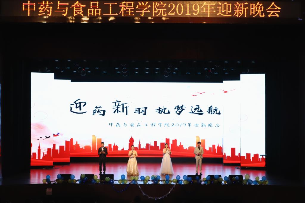 2019年10月14日晚6点35分,由中药与食品工程学院分团委主办、中药与食品工程学院学生会承办的2019级迎新晚会在大学生活动中心成功举办。学生处处长、学工部部长张斌仁,中药与食品工程学院党总支书记庞维荣,中药与食品工程学院党总支副书记梁峰岗出席,各辅导员老师与中药与食品工程学院全体在校学生观看。晚会由邓建,朱红鹤,杨璐嘉,杨杰主持。