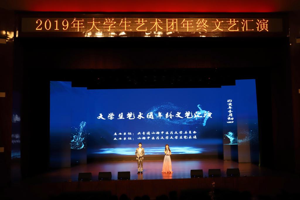 2019年11月29日晚七点,山西中医药大学大学生艺术团年终文艺汇演在大学生活动中心成功举办。校园委书记何彪出席,学生会主席团与各二级学院学生会主席以及全体在校学生代表观看演出。汇演由张寒,陈子伦主持。