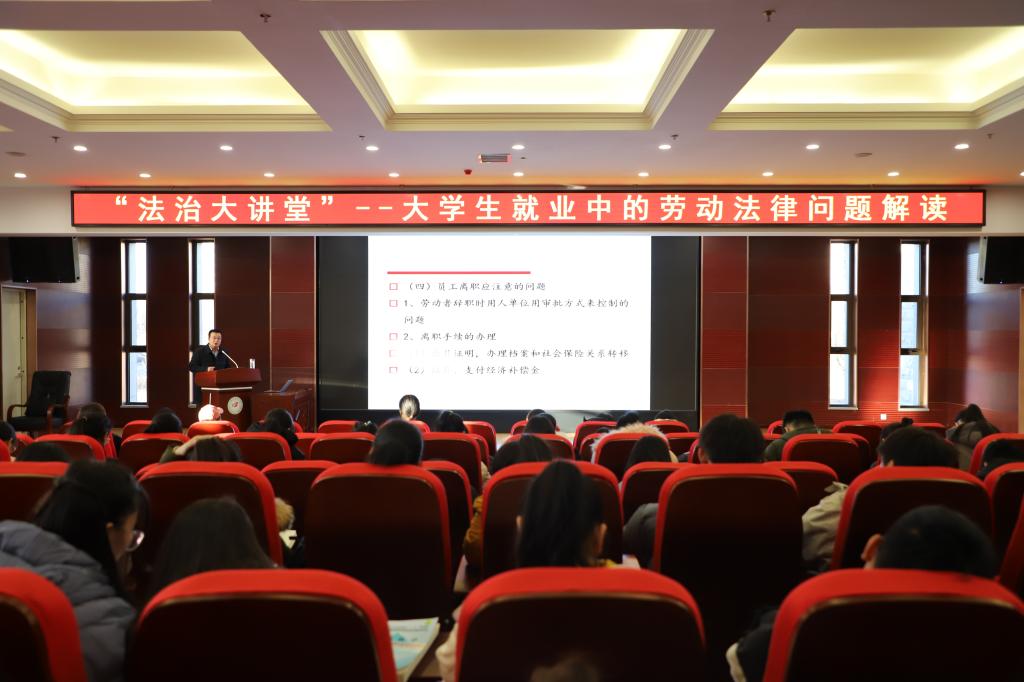 12月26日14时20分,“法治大讲堂”--大学生就业中的劳动法律问题解读讲座在图书馆一层报告厅成功开展。山西大学法学院讲师,山西省社会法学研究会秘书长、常务理事王士亨主讲。学校学生代表聆听讲座。