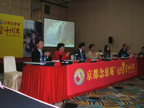 会上,首先由香港京都念慈菴温健祥致辞,国家中医药管理局教育司领导,办事处主任及各受助院校领导相继进行了发言总结。念慈菴助学金北京办事处施雪筠主任回顾了十年来念慈菴公司助贫奖学金的相关情况后。代表助贫奖学金北京办事处和十六所中医院校对念慈菴公司十年来的资助表示了诚挚的感谢!京都念慈菴总厂谢慧淦经理在大会上回顾了过去十年来的工作,之后提出了新的希望,她在欣喜于念慈菴助学金受助学生之多,范围之广的同时,更多的是希望能把念慈菴的这种孝顺伦理、济世利民、感恩回馈的风尚传承下去,让念慈菴的精神永远传递下去。