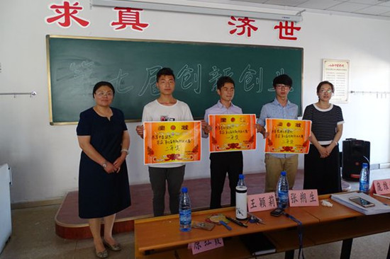 经过前期的初赛、复赛选拔,共有9支团队进入决赛。决赛分为“项目阐述”和“现场答辩”两个环节组成。第一环节,以参赛团队为单位,通过PPT展示,各团队分别从项目主旨、产品介绍、市场分析、竞争分析、经营及实施策略、管理背景及团队能力等方面对参赛项目进行讲解。现场答辩环节中,各评委们分别从方案内容的完整、方案可行性、未来的发展方向、市场效应、售后处理、目标客户等专业方面进行提问,同时,评委对各项目提出了中肯的意见和建议,并就其不足之处给予指导。经过激烈的选拔,评选出各个奖项,“青创团队”荣获一等奖。