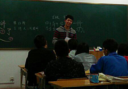 2017年4月12日晚八点整。16级中医1班全体同学在医学楼301教室举办第十八期中医讲堂——开讲啦。主讲人:刘武明同学