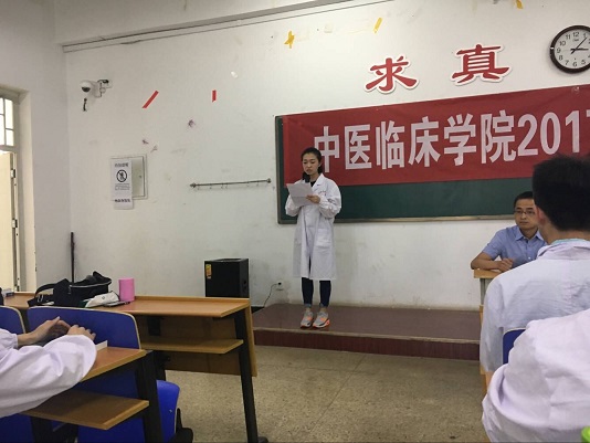 会上,全体学生重温医学生誓言,激情澎湃,斗志昂扬。周嘉宝同学代表全体学生发言,表达了对即将到来的临床实习的憧憬和期待。