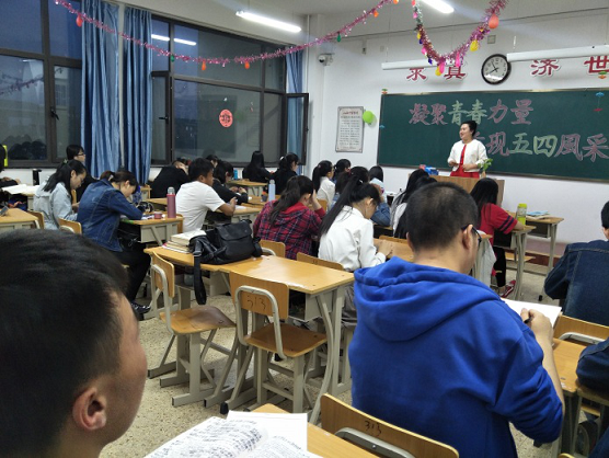 2017年5月15日,值五四爱国运动98周年之际,为响应校团委号召,继承和发扬五四精神,增强我校广大青年团员的责任意识,引导青年团员坚定理想信念、勇担历史重任,展示行业青年团员朝气蓬勃、奋发进取的精神风貌,14级中医一班在医学楼313教室开展了以“凝聚青春力量,重现五四风采”为主题的团日活动。