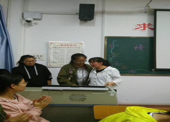 首先,主持人刘阳丽同学宣布活动开始,并以“何为朋友?”作为开场白,与同学们进行了积极的互动。随后由李媛同学演唱了一首《朋友的酒》,将现场气氛推向了高潮。同时又通过“你画我猜”的游戏让同学们真正体会到了朋友之间的默契,也真正体会了此次班会的主题。在班会的最后主持人刘阳丽与同学积极互动,并与同学们一起分享她的友情。最后,班会在歌曲《北京东路的日子》拉下帷幕。