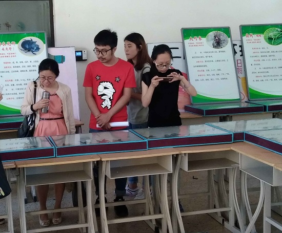 本次的展览由2013级植物保护班中几位刚结束实习工作的同学负责,他们将标本于农科院借出,为同学们举办标本展。“世界上最懒的虫子”、“角最多的甲虫”、“最美丽的蝴蝶”、“最长的昆虫”、一个个引人入胜的标题,将同学们带入了一个光怪陆离的新世界。进入和剂书院,映入眼帘的便是同学们观看标本箱的画面。陈列的展品中其中不乏一些极其珍贵、极具观赏性的种类,但更多的,是那些有着重要药用价值的昆虫。每个标本箱的旁边都有昆虫的性味归经、功能主治、用法用量和采制方法,为同学们详细的介绍该种昆虫的药用信息,将这些平时接触不到,却又与学习内容密切相关的药用昆虫知识展现给同学们。