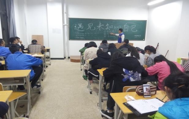 2017年5月1日晚7:30,15级中医实验班于图书馆九层班级教室开展了主题为“遇见未知的自己”的心理班会。此次班会由心理委员主持,15级中医实验班全体同学参加。