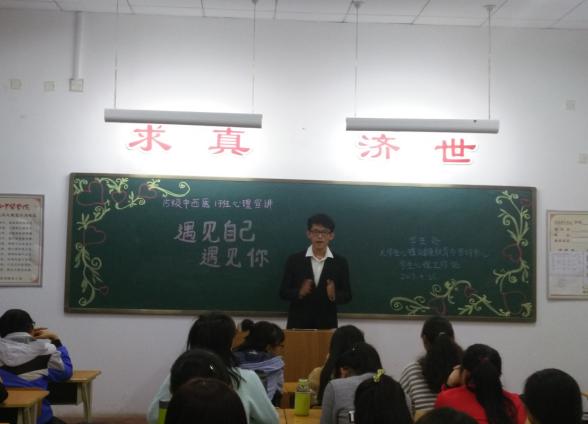 2017年4月26日晚19时30分,15级中西医1班在医学楼416教室成功举办了心理宣讲。15级中西医1班51名同学参加了活动,由杨茹担任主持人。