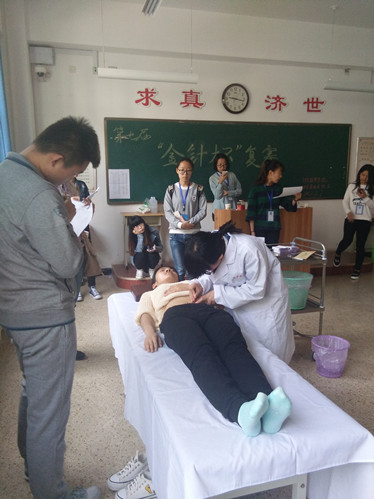 2017年5月7日上午8时30分,针推学院学生会实践部和针灸爱好者协会联合举办的第七届“金针杯”针灸技能操作大赛复赛于医学楼211、212、213、214这四个教室顺利进行。此次复赛共有32位同学参加,评委主要由崔依依、田雅姣等研究生组成。
