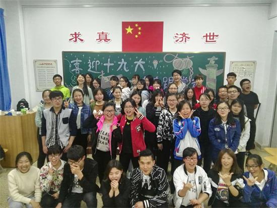 为帮助和引导青年深刻了解我们党治国理政的卓越能力和非凡成就,更好的培养广大青年对党的深厚感情,增强对党的信心信赖,把个人的前途命运与党和的国家的前途命运紧密结合,2015级中药班于4月24日19时40分在和剂书院甲座217教室举办团日活动-喜迎十九大,青春跟党走,全体同学参与,张钰和徐士洋是主持人,年委干事负责评分。