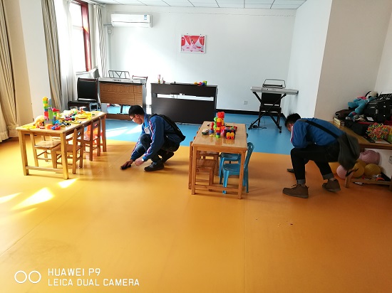 抵达福利院后,同学们将自己带来的爱心物品交给福利院的工作人员后,在工作人员的带领下,来到了福利院的音乐治疗室。在治疗室中,同学们为孩子们献上自己精心准备的礼物与节目。随后,同学们拿起了卫生工具,帮助福利院打扫卫生。