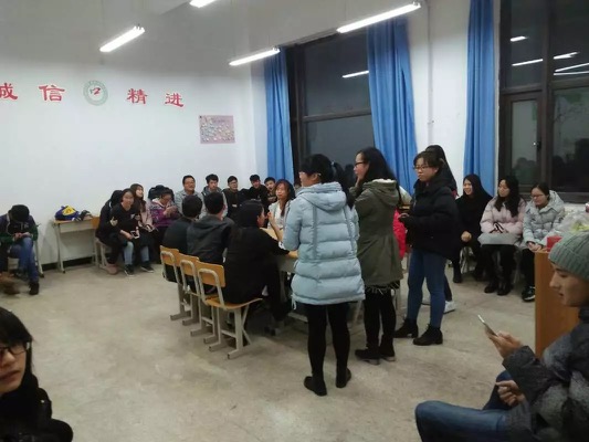 已经升入大三的14食品科学与工程一班的同学们,由于学业、毕业、考研、以及近期的期末考试,压力明显增加。并且近期网络有多名大学生以及明星患有重度抑郁等。当今大多数大学生由于面对巨大的学习压力而导致的一些心理压抑现象较多,这已影响到大学生的心理健康。因此,14级食品科学与工程一班于2017年1月4日举办“如何正确对待压力”呢主题心理活动。通过此次活动,让学生了解如何面对压力,化压力为动力,从而营造良好的学习氛围。 活动开始由宣传委员宋毓晔解读本次活动主题背景,随后由主持人刘畅主持进行心理压力测试。刘畅首先让同学们在纸上写下“人”字,随后出示两张“人”字卡片。然后告诉同学们, 字如其人,如果一个人承受了太大的压力,就会出现不平衡的发展,从而出现不协调的现象,就像这两个字一样。出示另一张卡片“人”。这是人字的正确写法,我们也可以把它看成一个身心都健康发展的人。当一个人承受了太大的压力,而又得不到适时的疏通,往往会出现心理压抑,久而久之,就会变成像刚才那两个字一样,内心失去平衡,甚至于会出现心理问题。