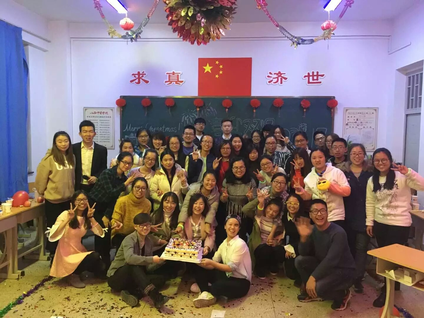 一场大雪映衬着圣诞节的脚步为校园披上了一层银色的面纱,也为同学们带来一丝甜蜜和惊喜,为庆祝已至的圣诞节与将来临的元旦,14级食品科学与工程3班全体同学于和剂书院306教室举办了“喜迎双旦”活动。