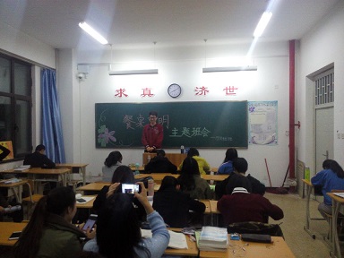 2016年11月16日,晚七点半,15级中医1班全体同学于医学楼201教室开展“餐桌文明”主题班会,本次班会由班长宁颖慧同学主持,导员黄朝忠全程参与。