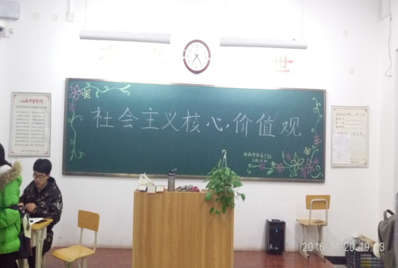 11月20日晚19时30分,15级中西医1班在医学楼416教室成功举办了以“社会主义核心价值观”为主题的团日活动。15级中西医1班51名同学参加了活动,由金启荣同学担任主持人。