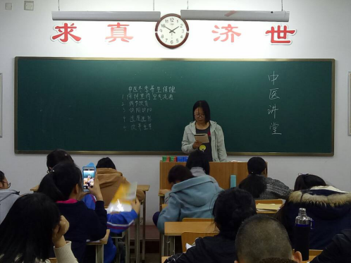 通过这次讲堂,介绍了冬季养生遵循的收藏、避寒、进补三大原则,增加了同学们的保健意识。