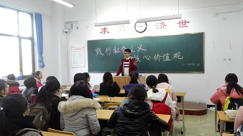 为贯彻落实中央《关于培育和践行社会主义核心价值观的意见》,全面贯彻落实社会主义核心价值观,13级中医3班全体同学于2016年11月24日于医学楼311举办了以“践行社会主义核心价值观”为主题的团日活动。