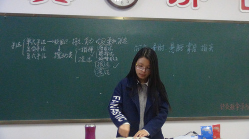 首先,主讲人张玥介绍了按摩推拿的治疗效果和保健疗效,并且着重讲述了按摩的适用对象。随后,主讲人围绕按摩的技巧,将一指禅推法和滚法等娓娓道来并在课堂上亲自演示了不同的方法技巧供干事们学习。最后,干事们在主讲人的指导下进行了练习操作,并在实际操作中对按摩推拿有了更加深入的了解。