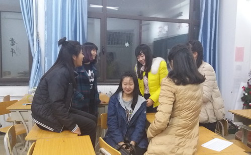 首先,女生部部长将全体成员分为2人一组的4个小组,以便于今日编发培训相互学习实操。随后, 主讲人邀请一位模特上台作为示范,主要展现了丸子头、半边麻花辫两种发型。在现场,同学们将讲台围成圈,认真仔细地观察编发手法,同时拿起身边同学的头发进行模仿学习。紧接着,主讲人针对如何做好日常头发护理、不同脸型适合什么发型等问题作出详细解答。最后,同学们有说有笑地互相编发练习,文艺部部长赵王慧在旁指导修整。一节培训课下来,同学们基本已经掌握编发要领,可以随心所欲地编出自然而美观的发型。