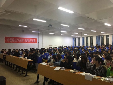 交流会以一个自制短片开场,简要介绍了学院的中医专业,报考情况,就业情况等,同学们了解到,中医之路是一条前途光明,同时也是充满荆棘与挑战的道路,学习对我们而言尤为重要。初踏入中医学的大门的16级同学们,或多或少存在着迷茫,此时举办的学习交流会就显得意义非凡。