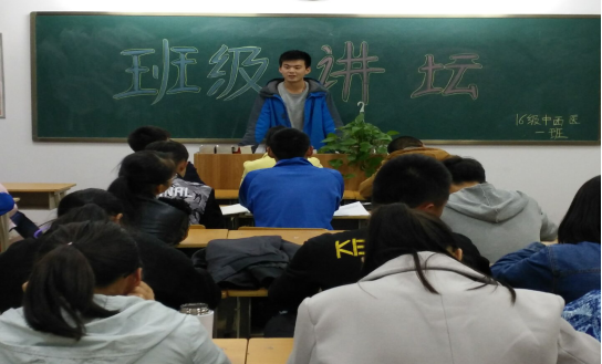 16级中西医1班于11月2日晚在医学楼416举办第二次班级讲坛。本次活动的主持人为王昭,演讲的三名同学分别为李轩、陈茜、王佳林,三位评委分别为唐博翔、范雅洁、梁文晋。