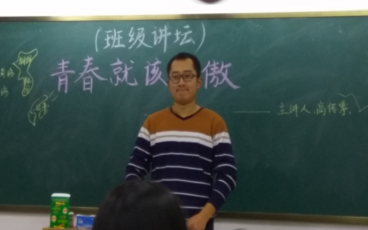 高传粟同学的主题是“青春就该狂傲”,以自己高中时期懒虫附体,推脱学习任务,最后复习的血泪史,告诫同学们即使在大学也不能放松,依旧要发奋努力,认真学习。继而又介绍了家乡山东的美食美景,并引用历史故事,让同学们的记忆更加深刻。他还介绍了自己的爱好——音乐与骑行,让同学们对他有了更好的了解。