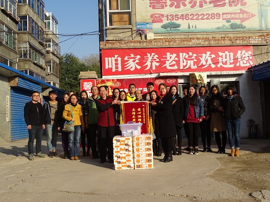 随后,在庞书记的带领下,中药学院志愿队来到了位于晋中市榆次区的“咱家养老院”,党员志愿者们把带来的慰问品分发给老人们。还陪着养老院的老人们聊天、谈心,让他们倍感温暖、舒心,排解心底的困惑。尤其在活动期间,一位九十三岁高龄的孤寡老人,见到我们,就像是见到她的亲人似的,不停地拉着老师的手,诉说她的人生经历,我们耐心的倾听着老人的述说,还不时的关切的询问老人的身体状况与日常起居,让老人开心快乐。期间,庞书记与咱家养老院的张院长进行了交流,庞维荣表示:“敬老爱老”是中华民族优秀的传统美德,中药学院会将敬老爱老这一活动继续传承下去,用实际行动去诠释“敬老爱老”的主题。
