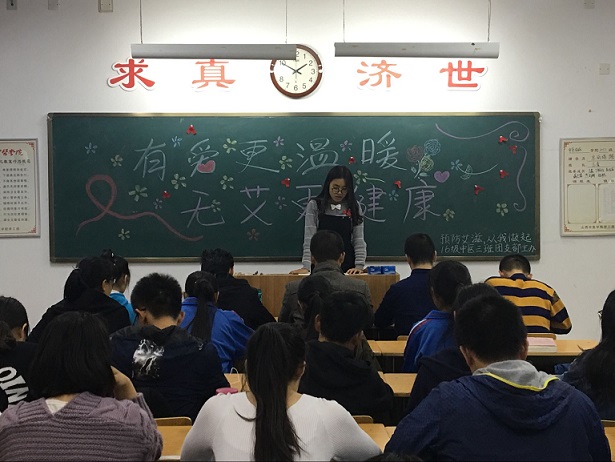 同学们踊跃发言,熊爽同学为我们介绍了艾滋病的四个阶段的不同症状,周振华介绍了艾滋病的起源,唐钧尧为我们讲述了艾滋病的传播途径,包括母婴传播,性行为传播,血液及血制品传播,静脉注射吸毒传播。李志浩说明了艾滋病对患者个人,对患者家庭及对社会的危害。团支书张星进行提问,包括HIV是什么,艾滋病患者和感染者的区别,以及艾滋病宣传日,艾滋病的治疗方法。同学们在竞答中增长了知识,更加深入地了解了艾滋病。最后同学们讨论了对待如何艾滋病,首先个人要洁身自好,加强自我保护意识,同时也要关爱艾滋病人,不要歧视。对于社会而言,政府要普及艾滋病知识,加强宣传,消除群众谈艾色变的恐慌心理。