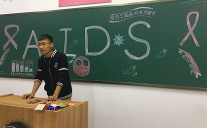 活动伊始,温昕同学解说艾滋病含义,就艾滋病人的特征与辨别方法进行了详细阐述。随后,学生代表张超同学向同学们讲解了艾滋病的流行现状、流行趋势,并向同学们展示出真正地艾滋病人的照片,使同学们对艾滋病认识更加深刻。然后,全班同学就“是否有必要将艾滋病人进行隔离”与“为什么普遍存在歧视艾滋病人的情况”问题进行热烈讨论,活动气氛高涨,大家积极提出自己的意见与见解。最后,温昕同学向同学们讲述艾滋病感染到死亡的四个阶段及传播途径,并向大家提出“不惧怕、不歧视艾滋病人和艾滋病病毒感染者”的倡议。