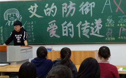 首先,陈晓颖同学带领大家做了双手高抬并对拍这样一个活跃现场气氛的动作,呼吁同学们加强自身艾滋病防治意识。接着,陈晓颖同学就如何关心和帮助艾滋病病人作出阐述:作为中医学子,作为护理人员,我们要深切地关怀艾滋病患者,不歧视,不忽略,尽自己所能帮助他们得到身体和心灵的慰藉。其次,陈同学组织大家以宿舍为单位进行知识抢答,借此形式向大家传播有关艾滋病的知识。最终,124宿舍获得“最佳答题宿舍”称号。最后,陈同学向大家推荐了一首歌《你好,艾滋病》,让同学们感受到了人间的真情。