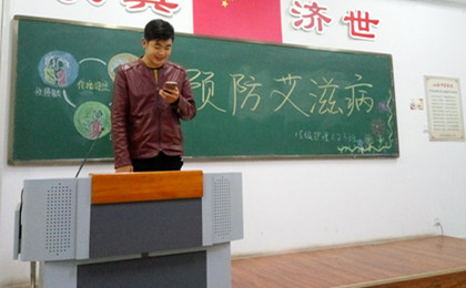 首先,乔佩同学介绍艾滋病在高校感染病例高速增长的现状,让大家认识到艾滋病离我们并不遥远,要高度重视对艾滋病的预防;接着,王云浩、钟欣鹏、刘彭涛三位同学分别上台讲解艾滋病的基本知识,传播途径、以及如何预防艾滋病;然后,王容祥就自己对艾滋病预防的看法进行发言,她认为从传播途径上看艾滋病预防简单容易,重要的是树立防艾的意识,同时对于艾滋病感染者要给与爱和关心;最后,乔佩做总结指出:预防艾滋病,从我做起!
