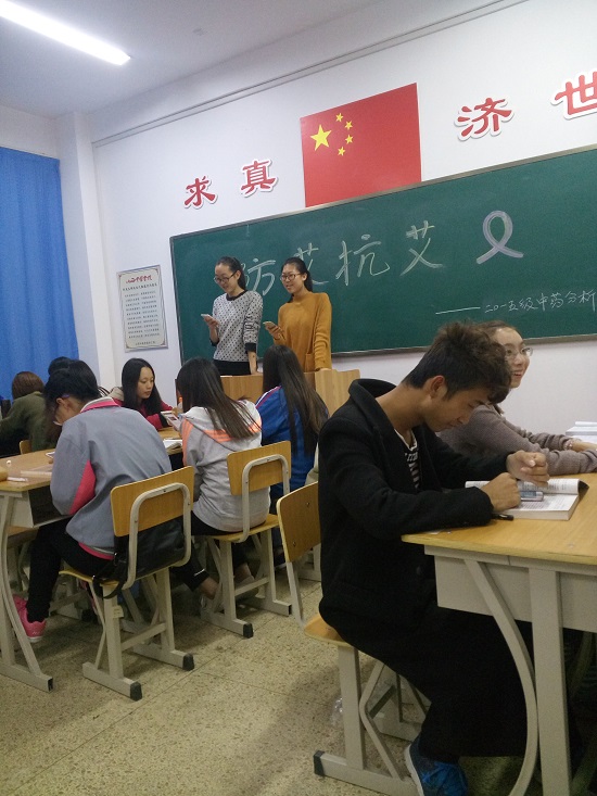 为全面实施健康教育,让同学们对艾滋病有更多的了解,将“防艾抗艾”的理念更好的运用在生活中,2015级中药分析班于10月19日晚7:30在和剂书院甲座211教室举行了以“防艾抗艾”为主题的团日活动。本次活动的主办者为第五团小组。全班同学参加了本次活动。