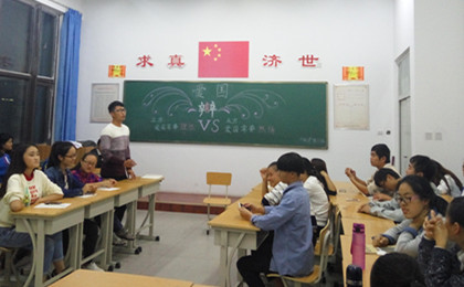 活动主要采用辩论赛形式,先由学生自由选择正反方并对号入座,主持人致开场白并宣布开始。开篇立论环节,正方充满理性色彩,反方慷慨激昂。正方通过列举当前真实案例陈述“爱国需要理性”的观点,反方以史为鉴陈述“爱国需要热情”的观点。在随后的自由辩论环节中,双方更是针锋相对,步步紧逼,现场气氛迅速升温,达到白热化阶段。辩手们精辟的措辞,犀利的言辞让现场掌声不断。最后,主持人总结陈词,正反双方清晰的思路和巧妙的陈词让大家对爱国有更加深刻的认识和理解。