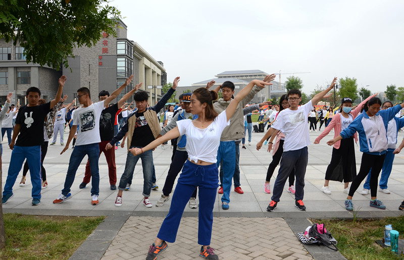 8月17日七时,医药管理学院全体开幕式参演人员于傅山广场集合。早上的山西中医学院凉风习习,大家便在这舒服惬意的氛围中开始训练。