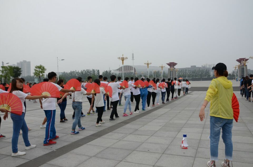 8月18日,连续多日的阴凉天气使时间过得似乎快了一些。七点整,同学们已拿着太极扇在傅山广场集合。编导老师简要说明今天的训练任务后,同学们便就位准备开始。