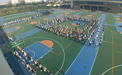护理学院学生方阵于杏林篮球场进行了全国第十三届传运会开幕式大型团体操的第四日训练。