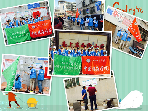 2016年7月17日中医临床学院暑期社会实践队从太原校区步行至万柏林区南上庄西街小区开展活动。本次活动主要包括:(1)响应团省委号召在社区基层进行“珍爱生命、远离毒品”禁毒教育宣传;(2)配合附属医院红手环志愿服务团进行健康义诊活动。