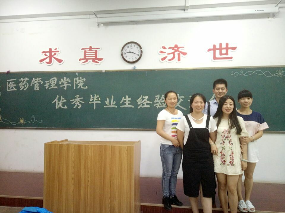 大会伊始,由主持人介绍参加本次活动的优秀毕业生。随后由优秀毕业生王陆、向芷莹、刘学平、唐琴、薛时悦以及王晓龙分别分享了自己大学四年的心路历程。其中王陆同学提出书中自有黄金屋的道理,同时鼓励同学们多参加课余活动,提升自己的实践能力和人格魅力;向芷莹同学鼓励大家要提前构思自己的职业规划,充实地度过四年大学生活;最后各位主讲人向有考研志向的学生们强调了英语、高数与专业课程的重要性。各位优秀毕业生在会议结束前为在场同学解答了他们在学习和生活中的问题。至此医药管理学院优秀毕业生交流大会圆满结束。
